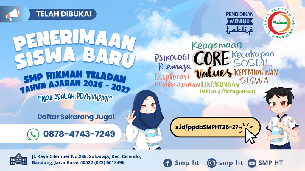 SMP Hikmah Teladan Bandung membuka Penerimaan Peserta Didik Baru Tahun Ajaran 2026/2027.